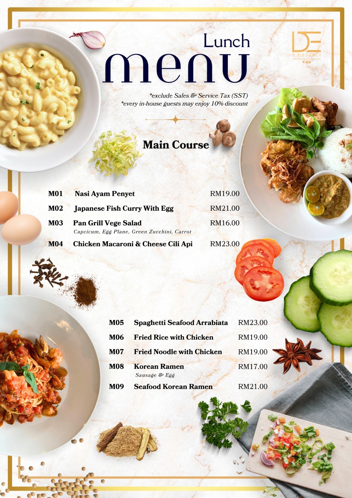 DE Café is set to welcome you to enjoy your breakfast/ lunch and dinner at our modern and spacious café. Feel at natural while enjoying various type of cuisine prepared by our chef. Don’t miss this! Have a meal with your partner.